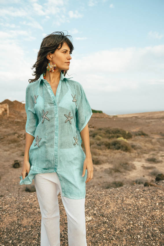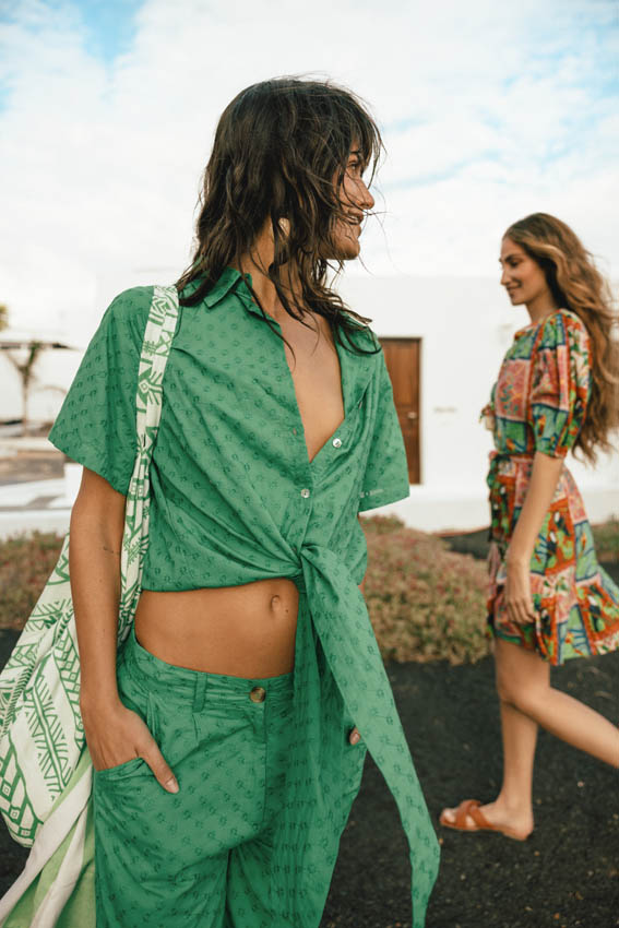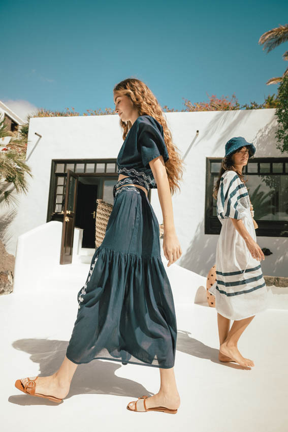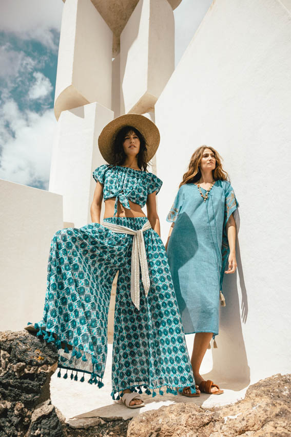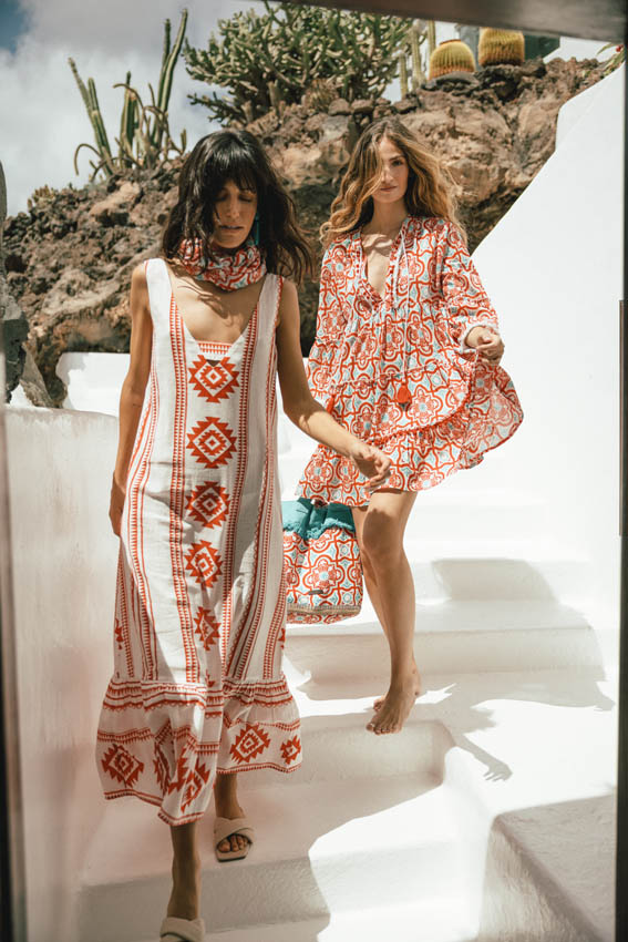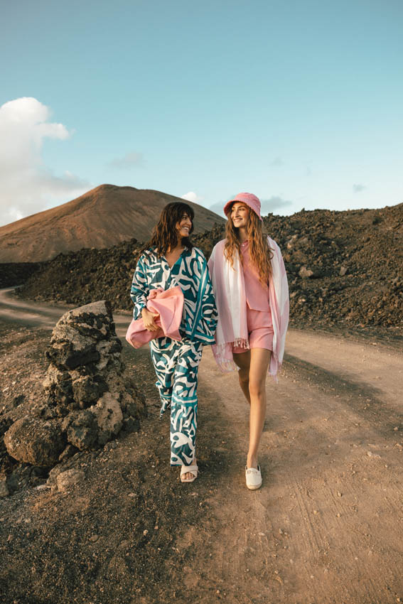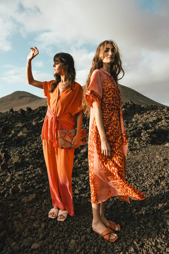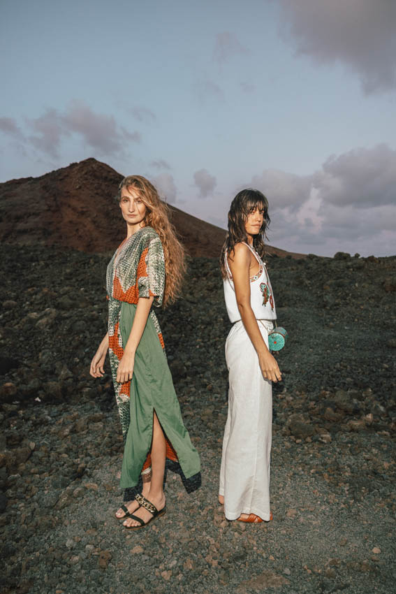 Lanzarote foi o cenário perfeito, com as suas casas brancas, as costas escarpadas e as paisagens vulcânicas que contrastam com as cores vivas, estampados arrojados e tecidos fluidos da coleção