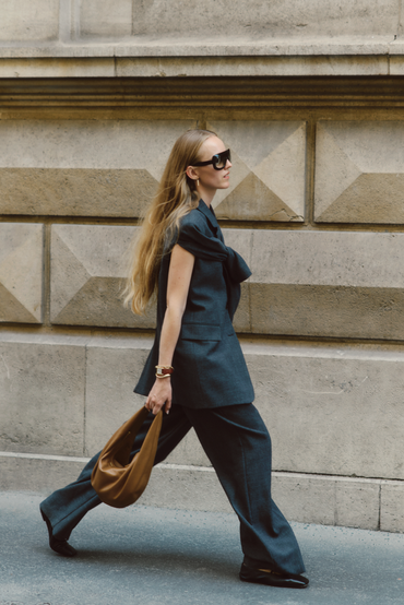 A stylist dinamarquesa Alex Carl optou por um fato oversized da MANGO Selection na Semana da Moda de Paris.