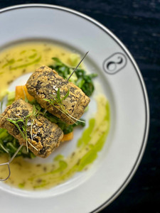 Nesta nova carta, o 26 Vegan Project continua a desafiar convenções e a reinventar memórias. Os pratos nascem de paisagens, cheiros e tradições, traduzidos numa linguagem moderna e vegetal. Entre os destaques, está a Tábua de Petiscos Portugueses, uma celebração de partilha que evolui há anos no menu; o poético “Ao Lume das Candeias”, inspirado na ilha da Madeira e servido com uma espetada de “sardinha” de aipo e polenta crocante; e a “Sopa Dourada”, que transforma um doce conventual em surpresa vegetal. Alguns clássicos da casa mantêm-se; como o “Tofu à Lagareiro”, o “Choco Frito à Moda de Setúbal” e a “Francesinha vegan” — pratos que contam a história do 26 e continuam a encantar quem acredita que “comida vegan” é sinónimo de sabor e conforto.
