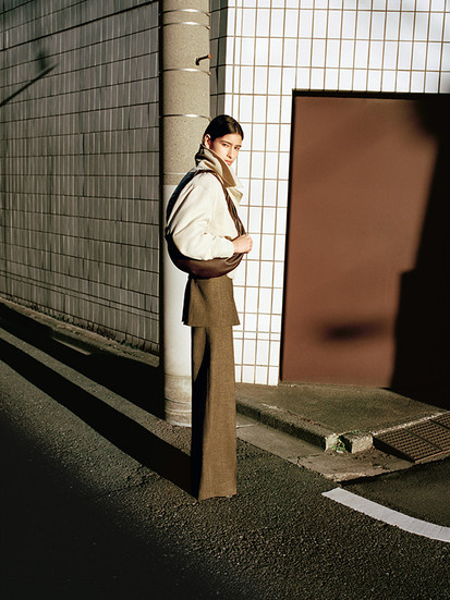 A paleta é suave, elegante e sofisticada! Sem contrastes agressivos, tudo flui de forma natural. A alfaiataria mantém-se como pilar central, acompanhada por peças em pele e criações atuais que transitam facilmente do dia para a noite. É aquele tipo de coleção que não precisa de exageros para marcar presença.