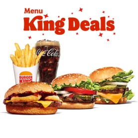 O Burger King® relança a oferta especial King Deals® a preços especiais. A nova campanha dá a provar os clássicos do Burger King® a preços imbatíveis, no restaurante ou em casa. No restaurante, o menu médio Whopper Jr, Big King Jr ou Texas Burger estão disponíveis por 3,99€ e o Double Whopper Jr, Double Chicken Burger ou Double Texas Burger por 4,99€.