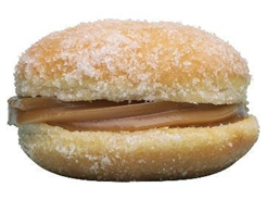 Segue-se a bola de Berlim com recheio de pastel de nata , com o sabor clássico do pastel de nata, toques de canela e uma massa fofa por fora.