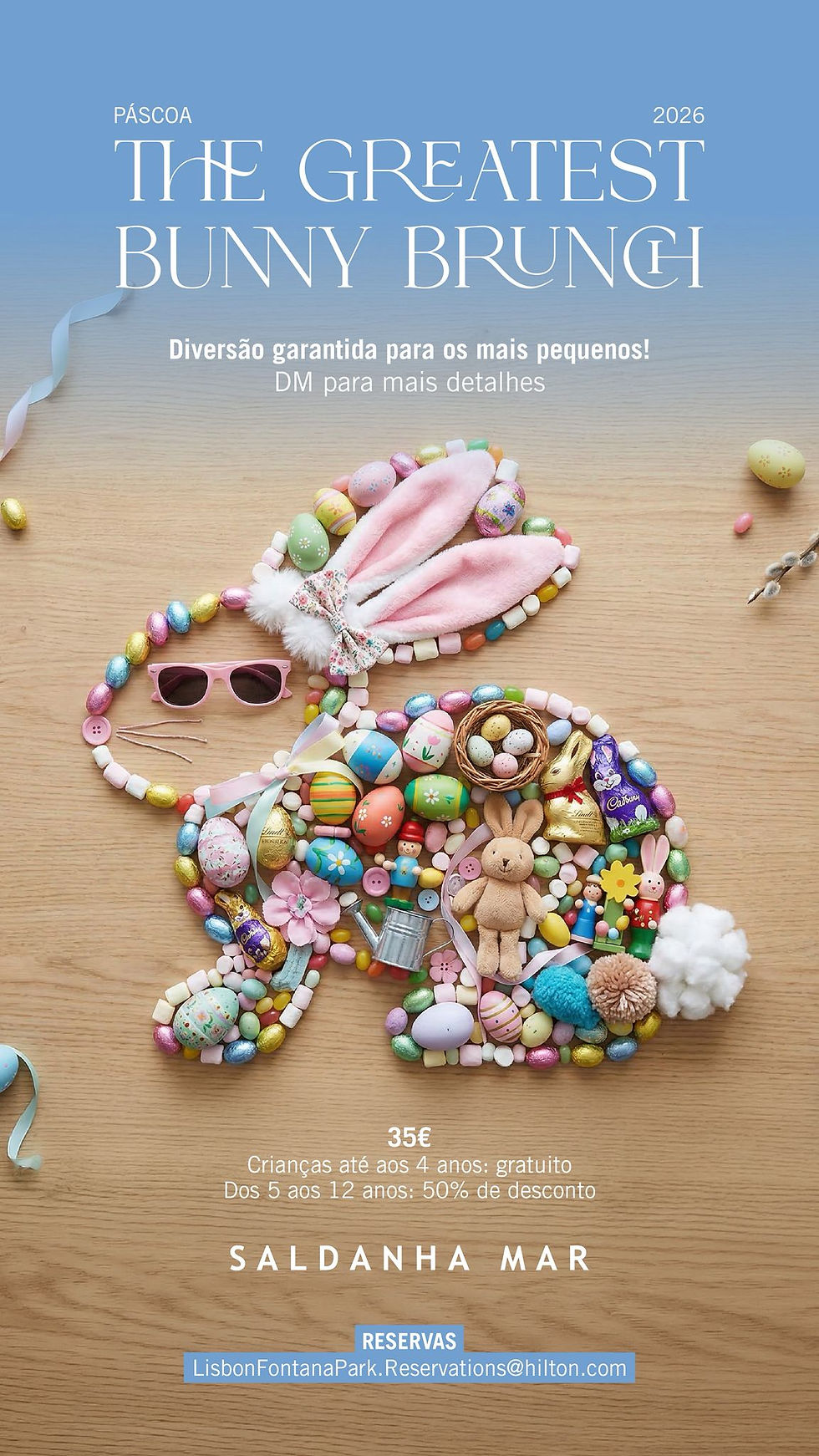 O chef Fábio Leonardo assina o menu do brunch de Páscoa do Saldanha Mar, combinando pratos frios e quentes com pastelaria artesanal. O evento realiza-se no dia 5 de abril sob a temática The Greatest Bunny Brunch.