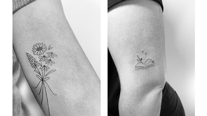 Quanto às tatuagens, destacam-se pelo seu estilo minimalista e delicado. Flores, folhas, ramos e objetos do quotidiano são temas comuns nas suas criações, desenhadas em linhas finas e traços leves de modo a garantir sofisticação e elegância. Para quem procura algo mais discreto, a tatuadora aconselha os seus desenhos de pequenas dimensões (menores do que uma moeda de um cêntimo), que tendem a conquistar o coração dos clientes mais reticentes. Porém, Lelê, que inicia o seu processo criativo sempre no papel, também gosta de seguir a imaginação de quem a visita: “adoro criar retratos a partir das fotos dos meus clientes e pôr em imagens as suas histórias, memórias e emoções”.